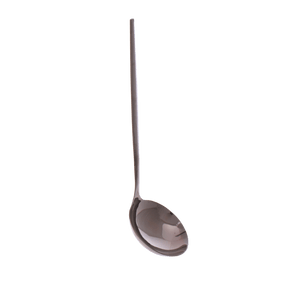 28 cm black stainless steel serving ladle, ideal for scooping and serving soups, stews, and sauces safely, combining durability, comfort, and ease of use in the kitchen.